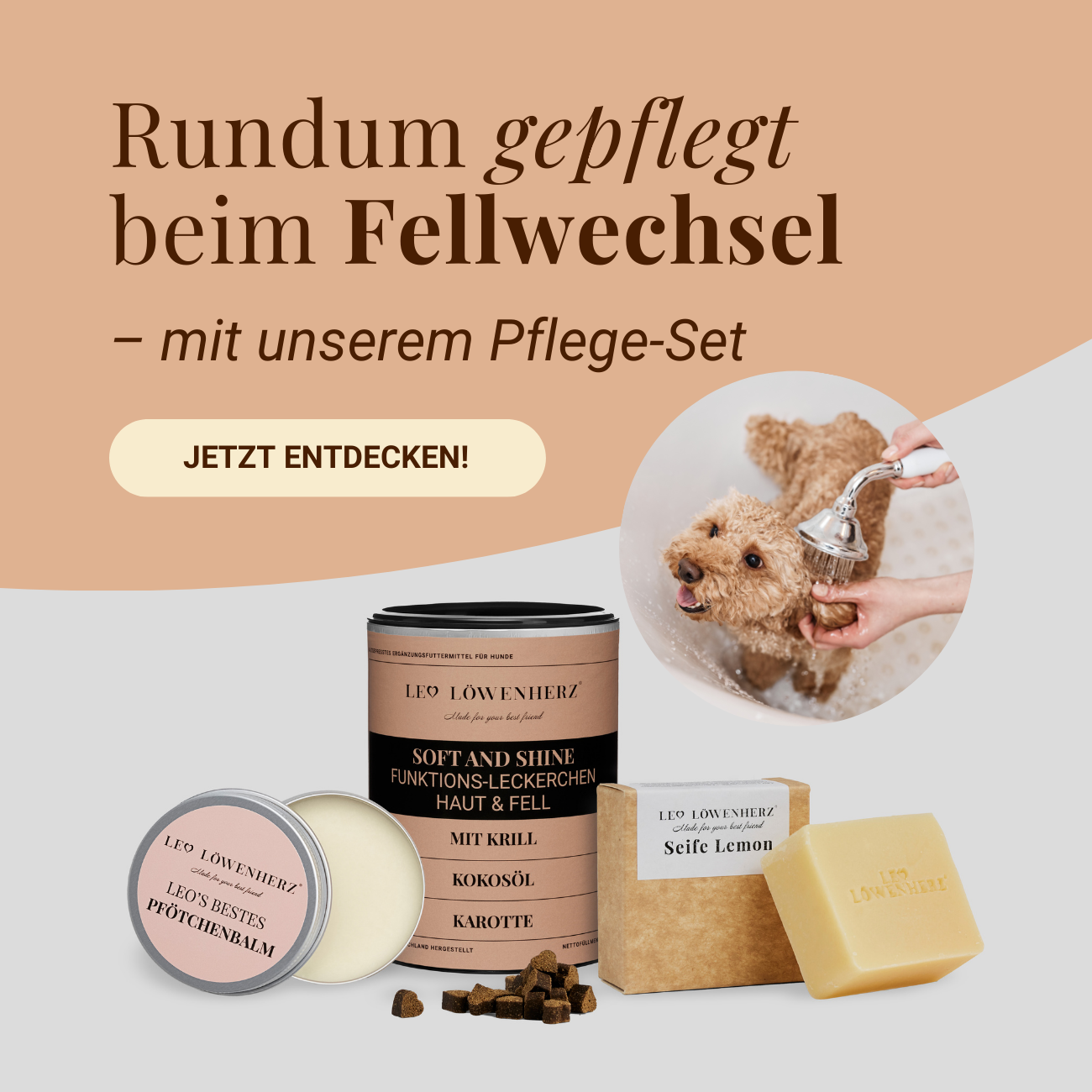 Ja, unsere Produkte sind rein natürlich und perfekt auf die Bedürfnisse Deines Hundes abgestimmt. Wir bieten verschiedene Sets an, bei denen die Kombination der Produkte ideal aufeinander abgestimmt ist, um die gewünschten Ergebnisse zu erzielen. Du kannst die Produkte aber auch individuell miteinander kombinieren, da alle unsere Rezepturen sorgfältig entwickelt wurden, um sich optimal zu ergänzen.