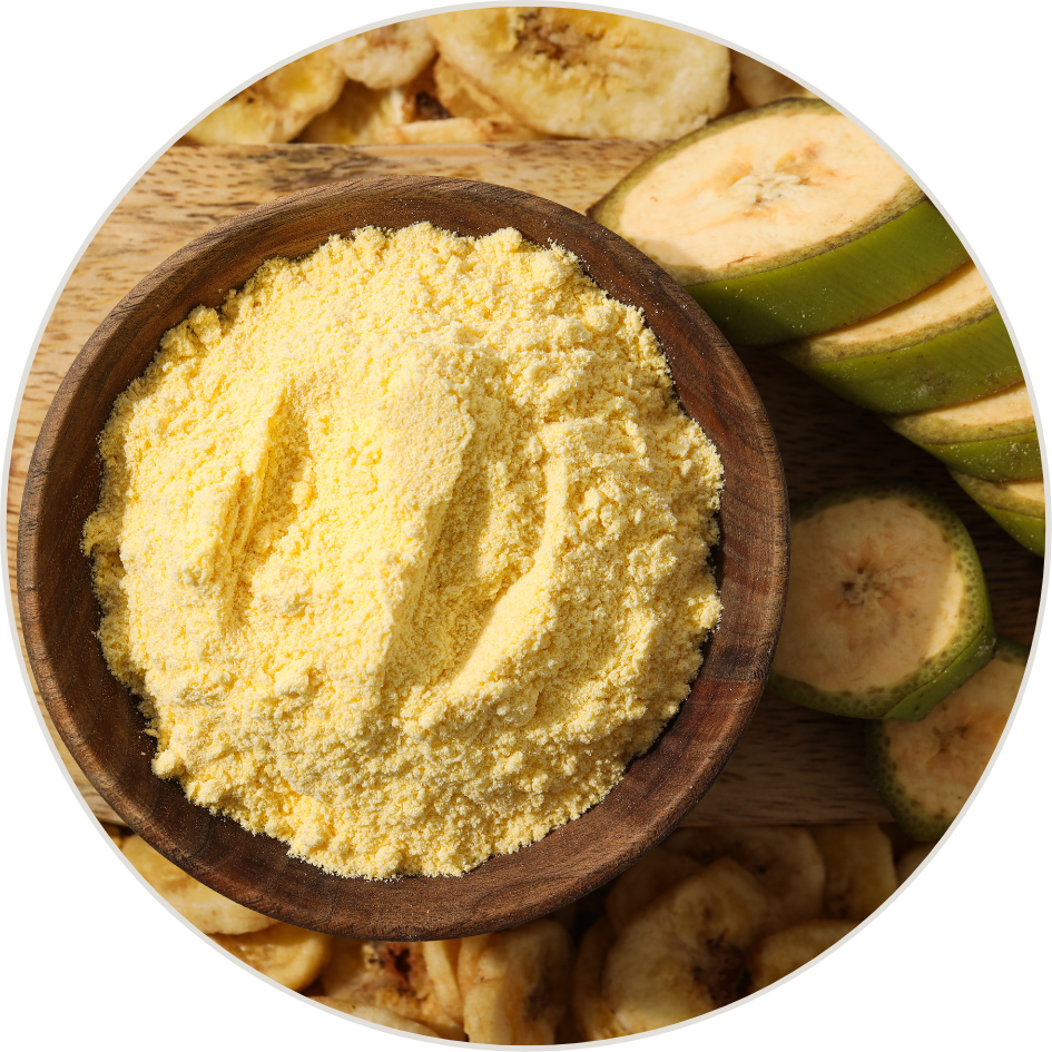 Bananenmehl ist eine natürliche Quelle für resistente Stärke, Ballaststoffe und essentielle Mineralstoffe. Es unterstützt die Darmgesundheit, indem es als präbiotische Nahrungsquelle für eine gesunde Darmflora dient und zur Stabilisierung der Verdauung beiträgt. Der hohe Gehalt an Kalium und Magnesium fördert zudem die Muskel- und Nervenfunktion. Durch seine leicht verdaulichen Kohlenhydrate liefert Bananenmehl langanhaltende Energie, ohne den Blutzuckerspiegel stark zu belasten.
