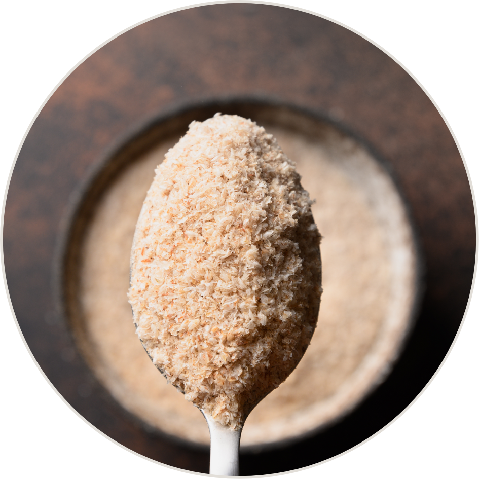 - Flohsamenschalen und Pflanzenkohle, die die Darmtätigkeit regulieren und überschüssige Flüssigkeit binden.